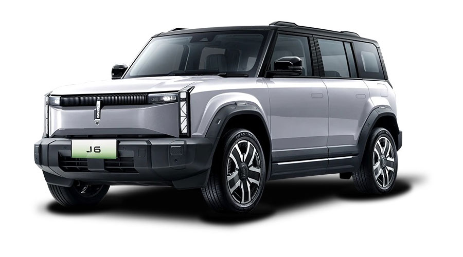 Chery J6, SUV Offroad listrik pertama di Indonesia dari Chery siap menemani aktivitas masyarakat urban yang gemar dengan sensasi berpetualang. Hadir dengan perpaduan sempurna antara gaya hidup modern dan semangat kebebasan dalam berpetualang, Chery J6 dirancang sebagai SUV listrik yang tangguh dan berteknologi tinggi, namun memiliki desain "Fashion Cube Box" yang penuh estetika dan fashionable.